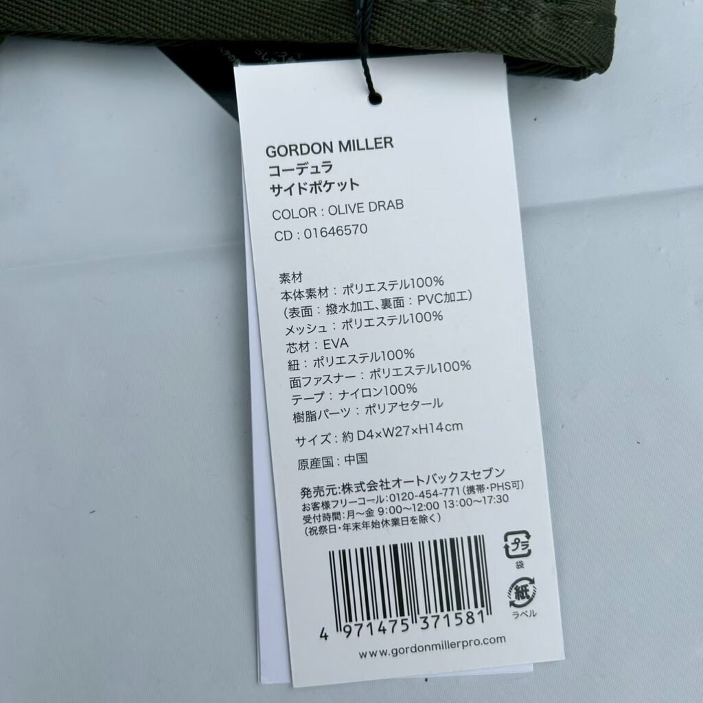 GORDON MILLER コーデュラサイドポケット ナイロン生地 多機能ポケット
